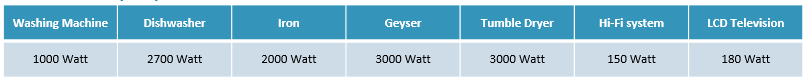 - Consumption of an appliance are converted to a one hour (h) period, known as kilowatt / 1 hour = kWh.
